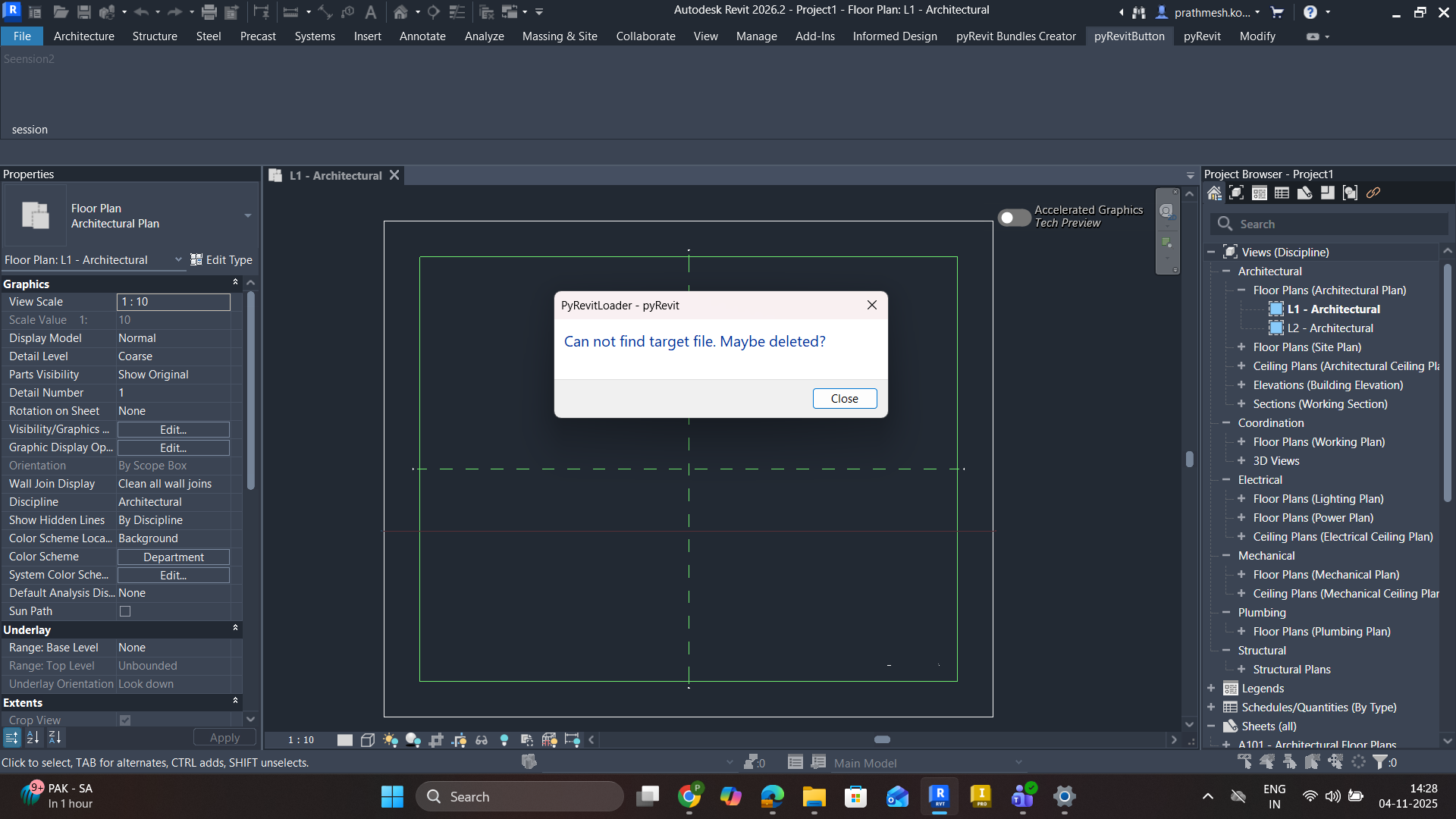 This issue belongs to the pyRevit Add-in Development / Extension Troubleshooting category. It typically occurs when pyRevit cannot locate or load the Python script linked to a custom button. The error “Cannot find target file. Maybe deleted?” indicates that the button’s configuration or folder structure does not correctly reference the target