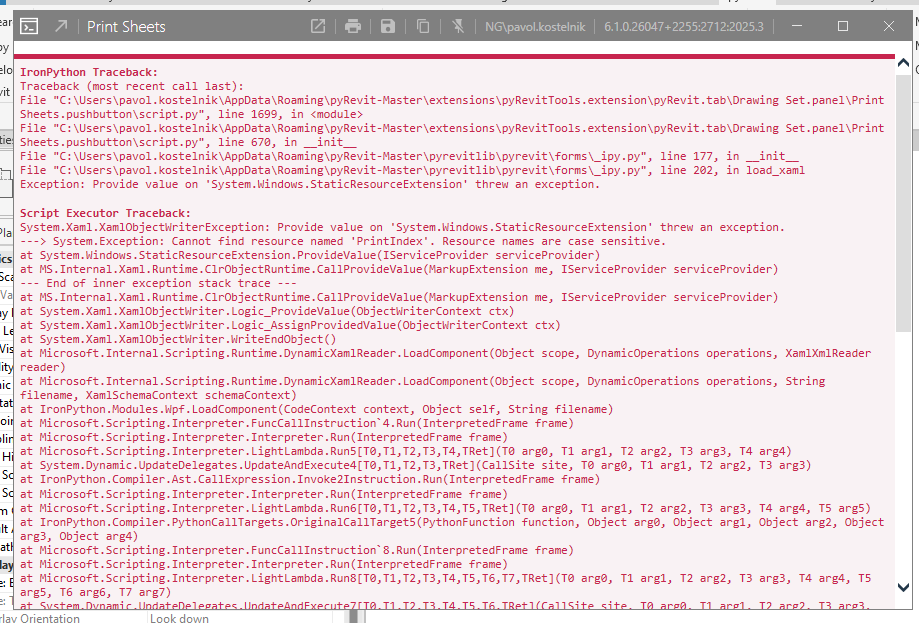 File “C:\Users\pavol.kostelnik\AppData\Roaming\pyRevit-Master\extensions\pyRevitTools.extension\pyRevit.tab\Drawing Set.panel\Print Sheets.pushbutton\script.py”, line 1699, in