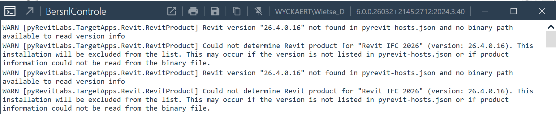 2026-02-12 08:00:37,912 INFO [pyrevit.loader.sessioninfo] Running on: 2.7.12 (2.7.12.1000) [.NETFramework,Version=v4.8 on .NET Framework 4.8.9310.0 (64-bit)]