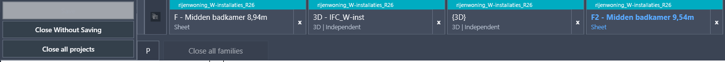 Any idea how to close last opened tabs of a project (and by closing the tab also closing the project) like native Revit? I have no success with that function. I’ve a feeling that Autodesk restricted this functionality.