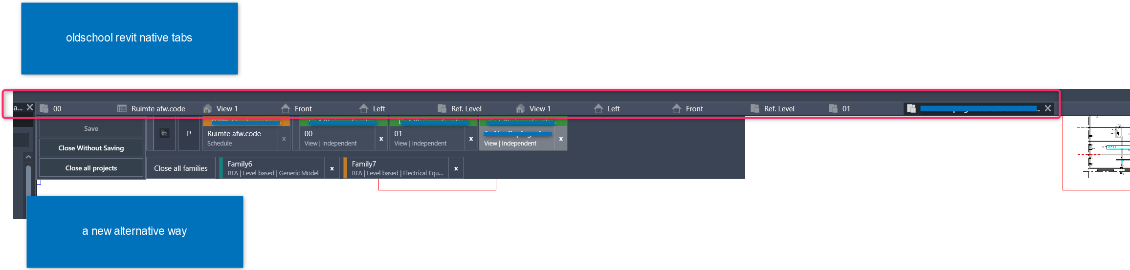 I’ve added an advanced family tab organizer within it. So we will know what family we are opening and no more unnecessary views of family’s. no needed, we just open the family and we continue within the family, (max. amount of opened tabs, each user can set that up, within the settings).